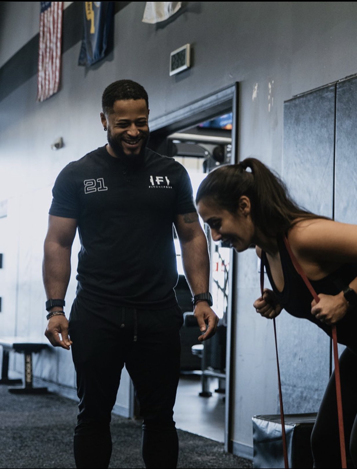 Private gyms can make it a little more homy for people who want to work with personal trainers. Here I am just taking my Fiancée through some movements